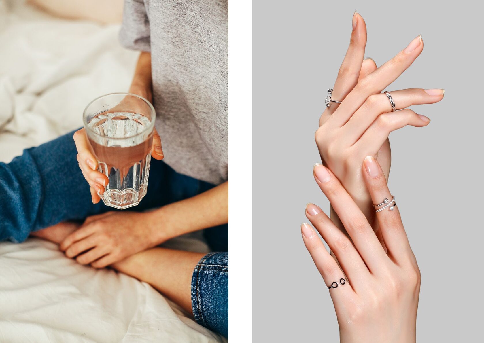 Как минимум потому, что наш организм на 50–70 % состоит из воды. При ее недостатке влага сохраняется для органов, считая их первостепенными. Кожа, волосы и ногти — не в приоритете. Поэтому они первыми остро реагируют на обезвоживание.